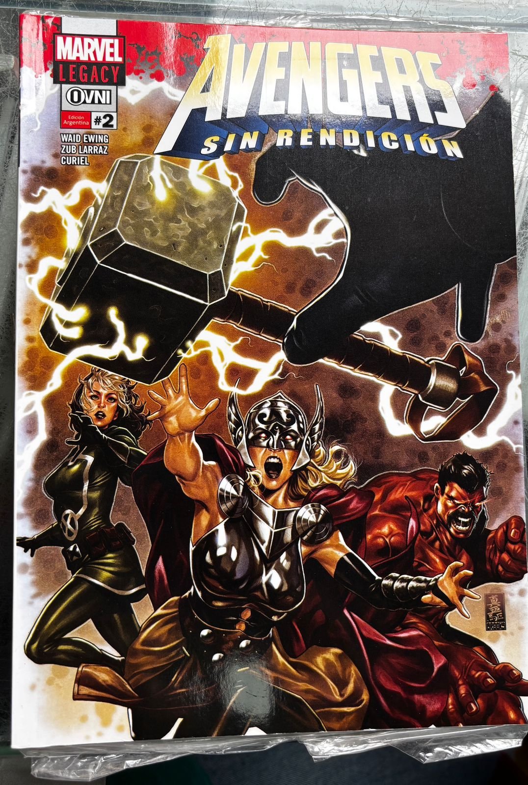 Los Avengers enfrentan una amenaza cósmica en Sin Rendición. Una saga épica de Marvel llena de acción y héroes legendarios.