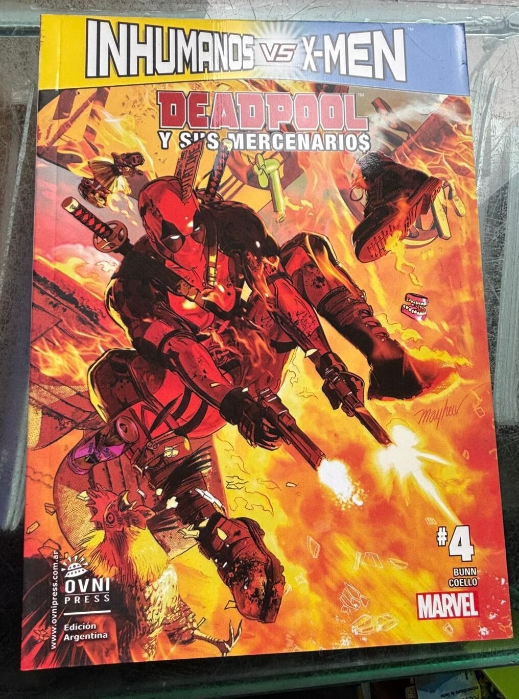 Entre batallas épicas, alianzas inesperadas y el humor irreverente que caracteriza a Deadpool, esta historia mezcla acción, drama y comedia en un conflicto que cambiará el destino de ambos bandos. Una lectura ideal para fans de los X-Men, los Inhumanos y del mercenario más bocón de Marvel.
