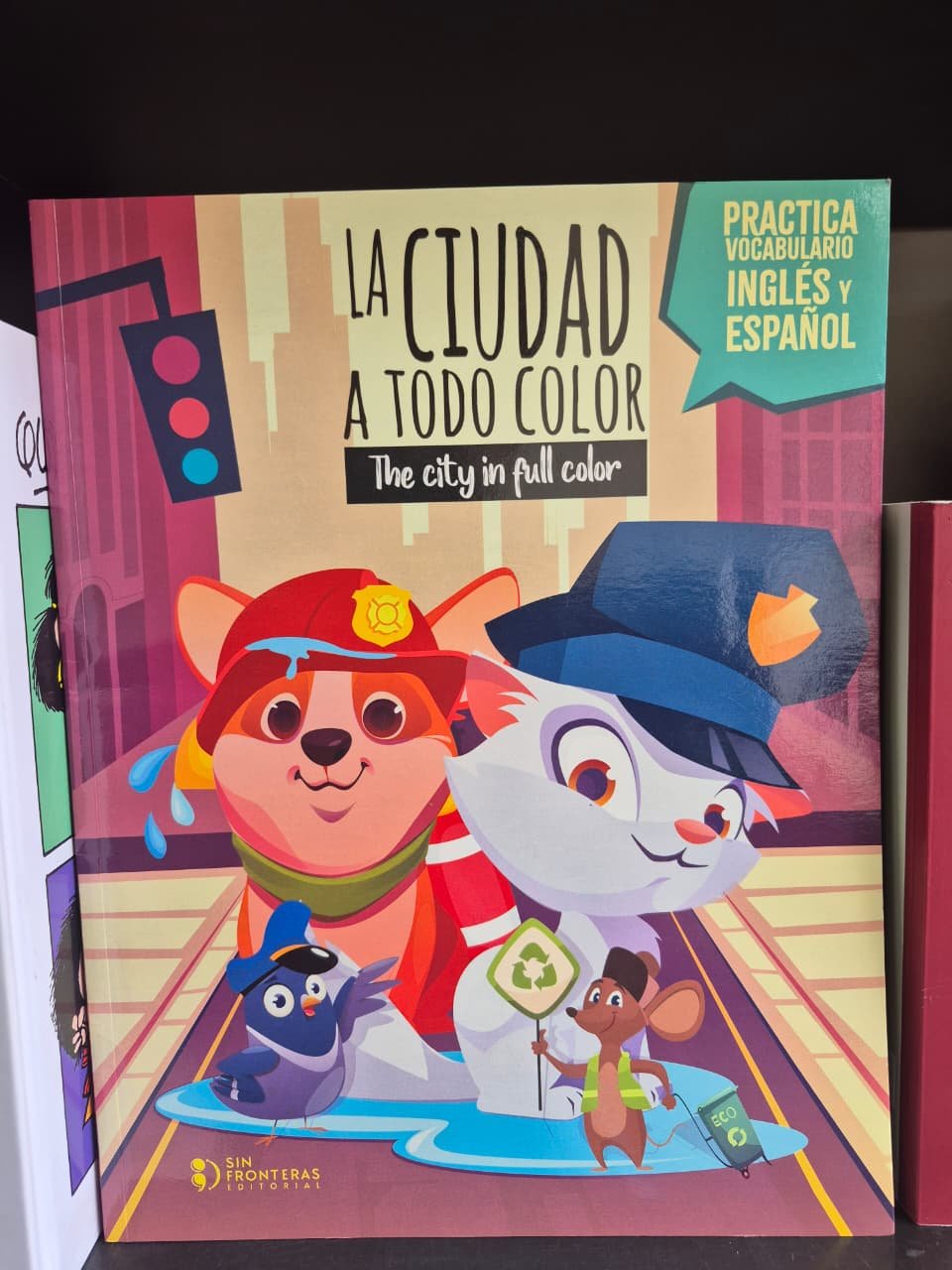 La ciudad a todo color es un libro educativo diseñado para que niños y principiantes aprendan vocabulario en inglés y español de manera divertida y visual. A través de ilustraciones coloridas y escenas cotidianas de la ciudad, los lectores podrán identificar objetos, lugares y situaciones mientras refuerzan el aprendizaje de ambos idiomas.