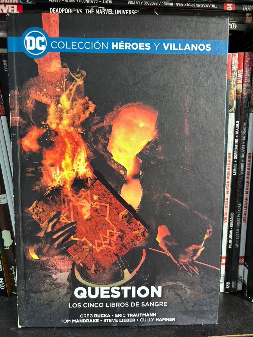 The Question: Los Cinco Libros de Sangre es una historia oscura y profunda del universo de DC Comics, protagonizada por el enigmático The Question. Con su característico enfoque filosófico y estilo detectivesco, este cómic se adentra en una investigación que desafía la lógica y la moral.